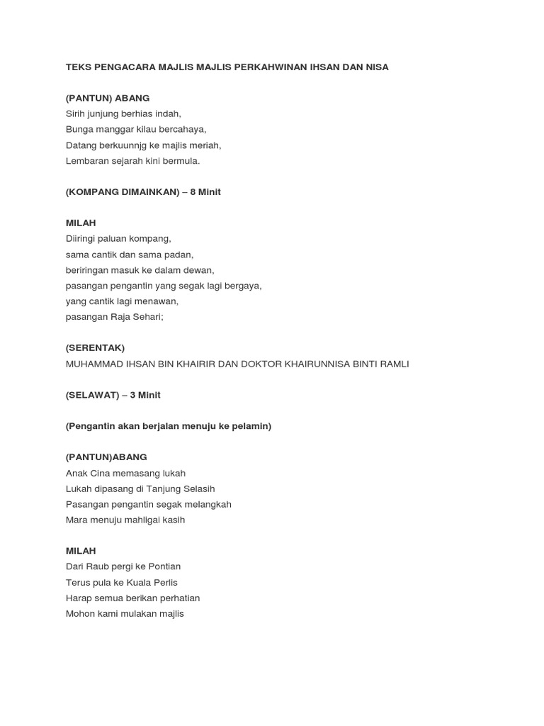 Teks Pengacara Majlis Majlis Perkahwinan Ihsan Dan Nisa Pdf